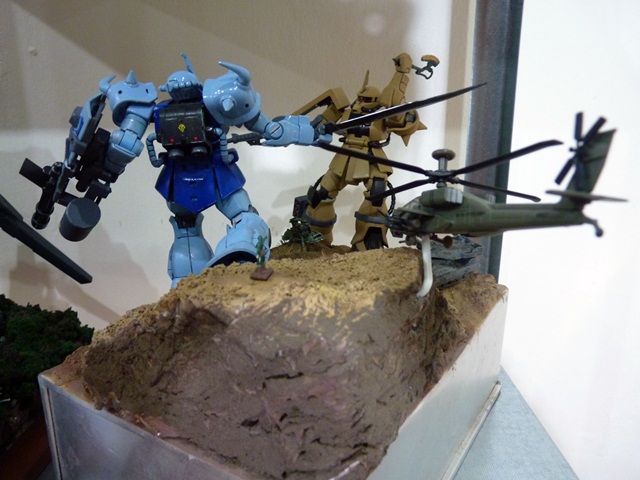 but back to this. This dio i made depicts two ms, Ms-07 Gouf Custom and Ms-06 II Zaku Commander. Eventually the Zaku once a Zeon ms, was captured and refurbished by the federation forces.